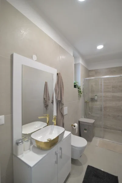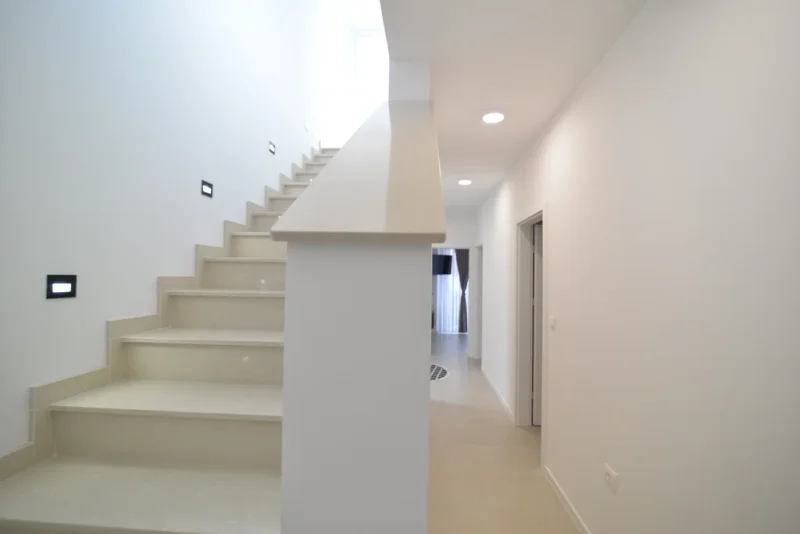 The ground floor of each house includes (70 m² net): a bathroom, kitchen with dining area, spacious living room with access to a covered terrace, and a shared summer kitchen (12.78 m²).