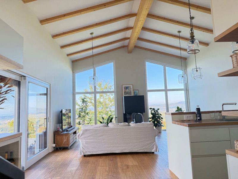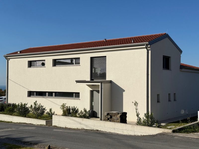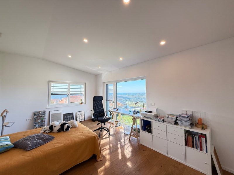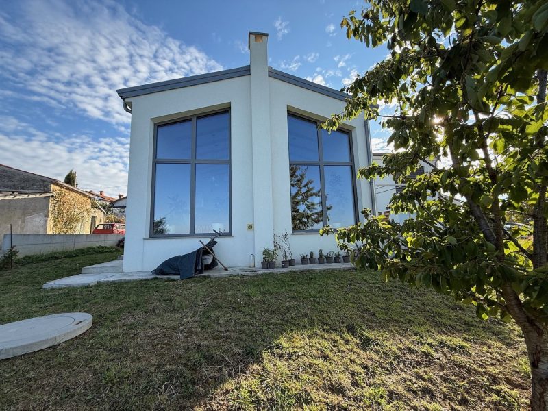 Ekskluzivna moderna hiša s čudovitim pogledom na Koper in Trst, v skupni izmeri 208 m2 in z 743 m2 zemljišča naprodaj. Nahaja se le 15 min vožnje iz Kopra. Ponaša se s čudovitim odprtim pogledom na morje, kvalitetno gradnjo (veliko steklenih površin), moderno arhitekturno zasnovo, toplotno črpalko in posledično nizkimi stroški.