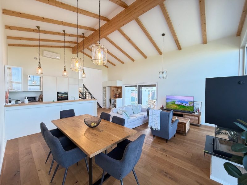 Oprema: vsa oprema ter svetila so skrbno izbrana in lepo osvetljujejo galerijo oz. dnevni prostor. Tla v vseh dnevnih prostorih, jedilnici in kuhinji so obložena s kvalitetnim hrastovim parketom. V kuhinji se nahaja kuhinjski otok.